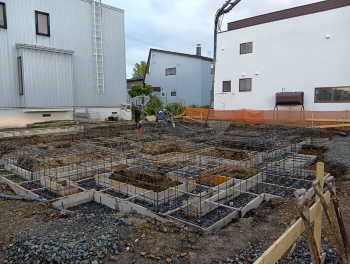 さて、9月下旬に地鎮祭を行ったW様邸新築工事は杭工事後、基礎工事が進んでいます。