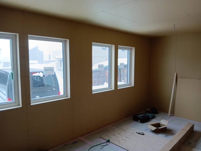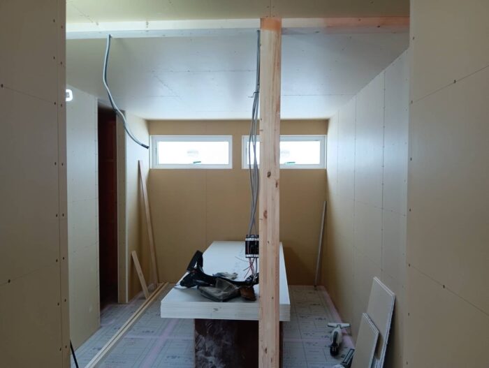 天井、床と進み壁も石膏ボードが張られています。