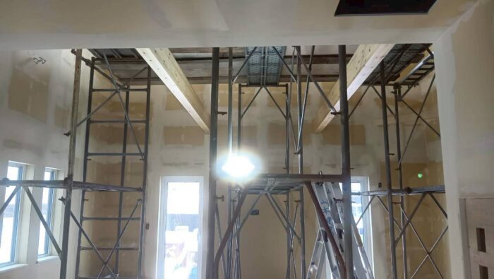 広い吹抜け作業中ですね。