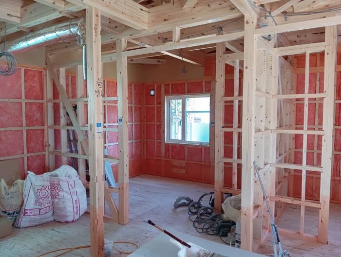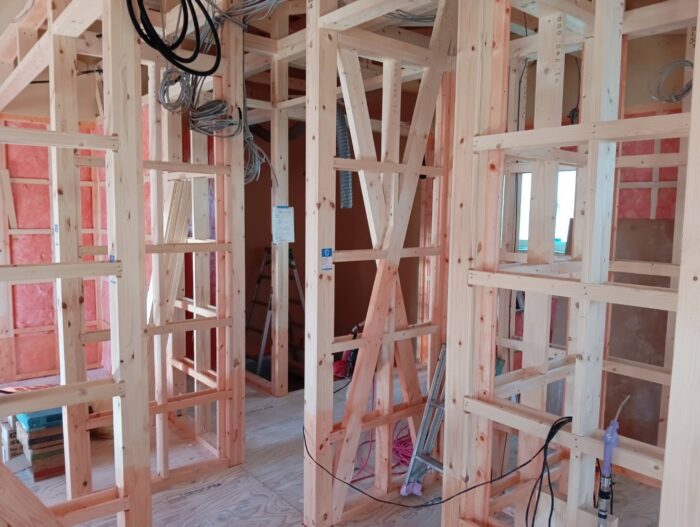 さて、S様邸新築工事は外部も内部も進んでいます。