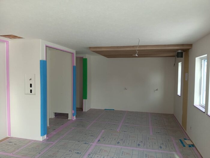 さて、I様邸新築工事は床を張り始めました。