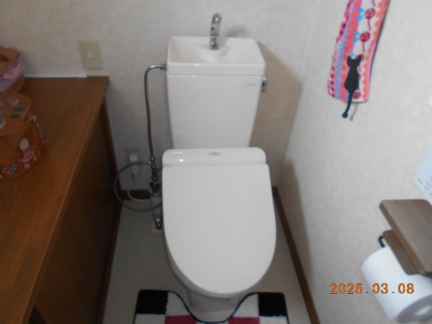 古くなったトイレを、掃除しやすい一体型トイレに交換