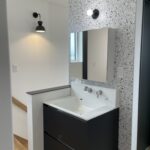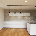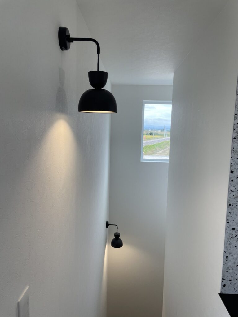 所々に黒い照明を設置し、空間にメリハリをつけました。