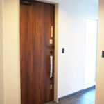 建具は、主にLIXILのラシッサD キナリモダンのソフトグレー。一部にラフィスのハイドア ブラックを使用しています。