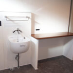 洗濯脱衣室には、ツールボックスのアイアンハンガーパイプや靴などが洗いやすいスロップシンクを設置しました。