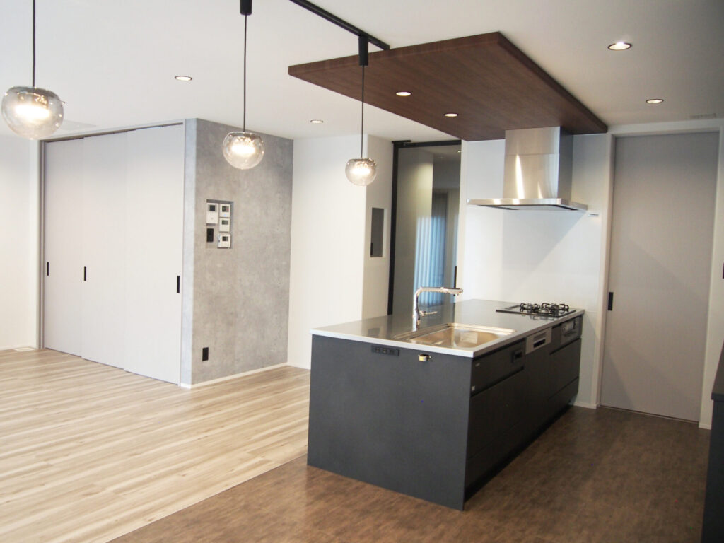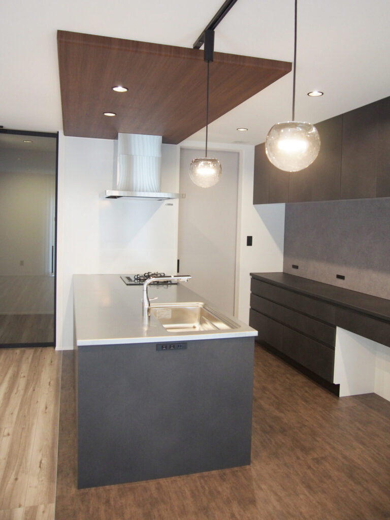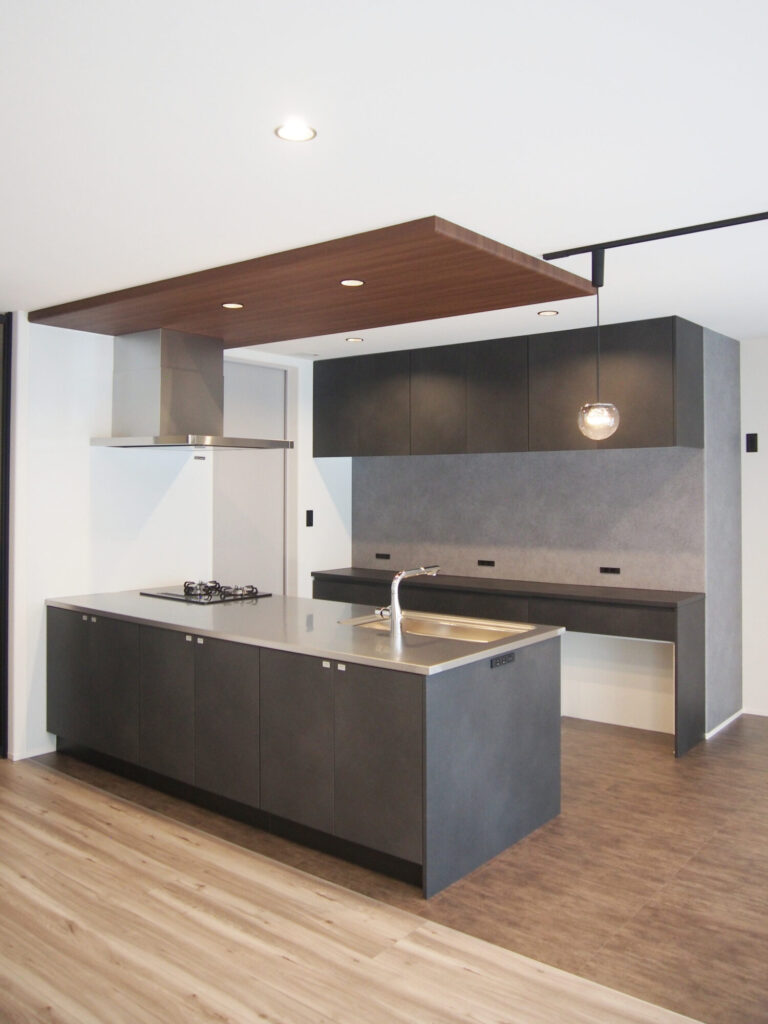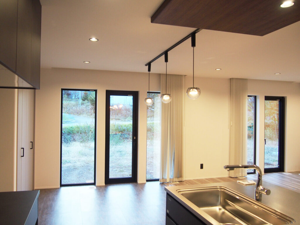 キッチン、ダイニングは横並びにし、家事楽動線の間取りにしました。