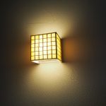 階段室の照明は、塗壁の素材をふんわり照らし、ぬくもりのあるイエロー。