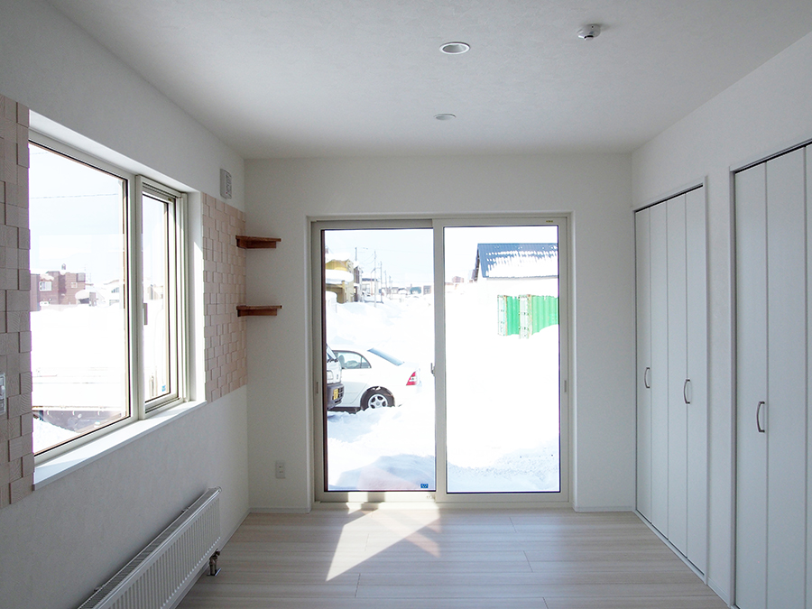 2階寝室にも袖壁でウォークインクローゼットを設けました。